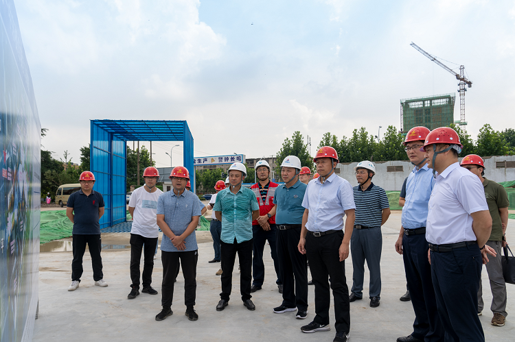 葛斌首先聽取了項目建設(shè)情況簡要匯報,實地察看了工程進度,詢問了項目施工階段出現(xiàn)的重難點,對項目部不怕困難、迎難而上的斗志表示贊許。他要求項目部一定要排除萬難,全力以赴確保8月15日樁基節(jié)點目標(biāo)及其余各大節(jié)點目標(biāo)按時完成。