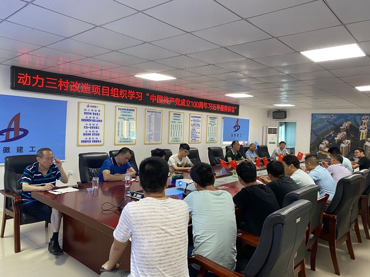 7月16日,安裝公司黨支部組織支部黨員、入黨積極分子及項目管理人員深入合肥一中東校區項目部,學習習近平總書記在慶祝中國共產黨成立100周年大會上的重要講話精神。