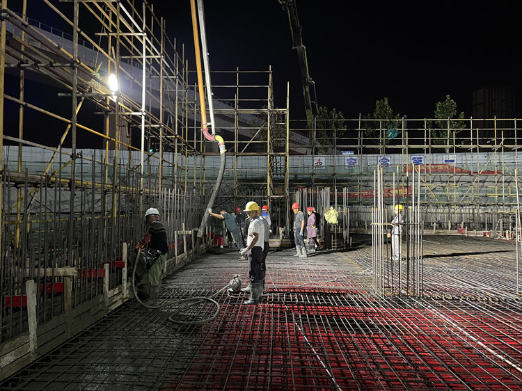 蚌埠公司淮南拓基鼎元世家項(xiàng)目假日期間合理排班,組織夜間澆筑混凝土。