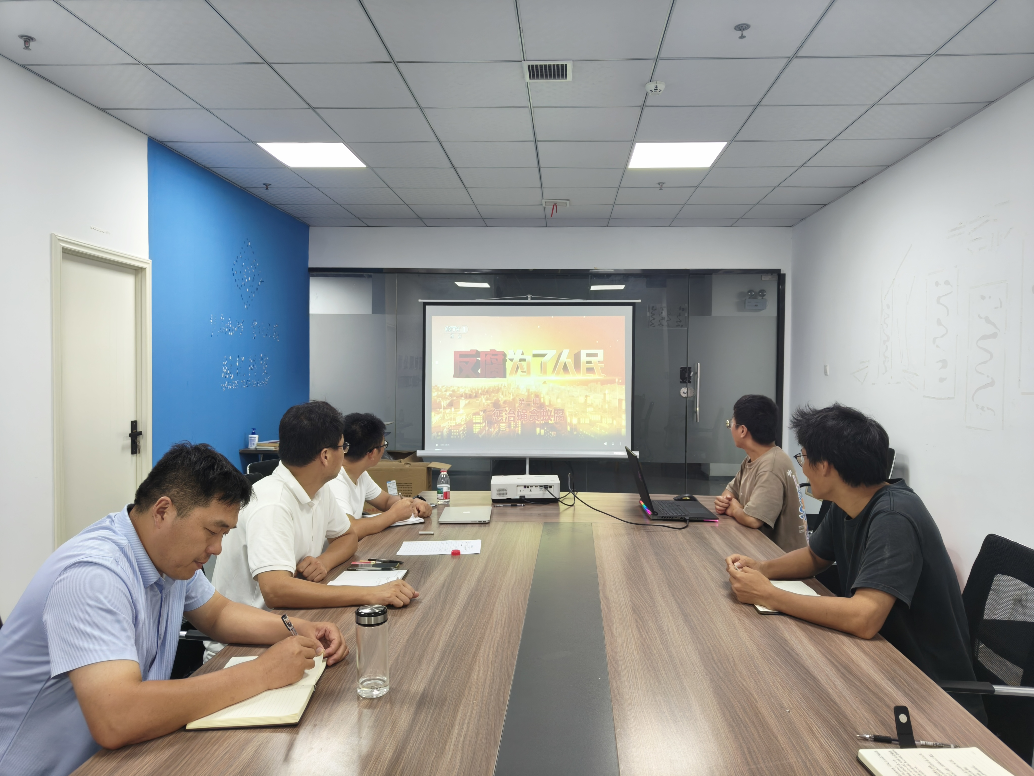 談話后,項目全體管理人員集體觀看了由中央紀委國家監委宣傳部與中央廣播電視總臺聯合拍攝的專題紀錄片《反腐為了人民》,通過以案示警,進一步強化項目全體管理人員廉潔自律意識,筑牢拒腐防變思想防線。