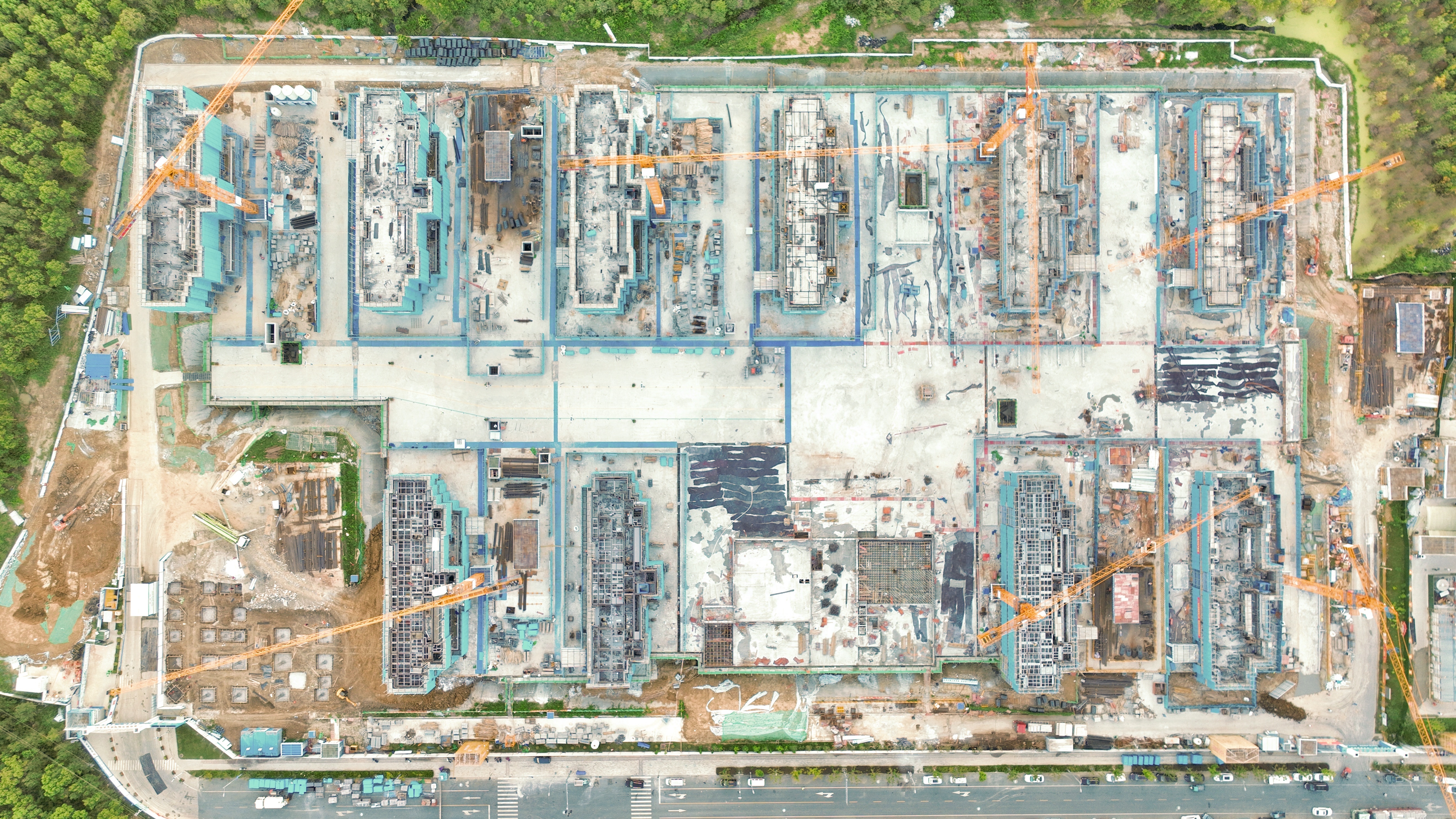 1.地庫結(jié)構(gòu)全面封頂:1-7區(qū)地庫筏板結(jié)構(gòu)全部完成,累計澆筑混凝土2.7萬立方米;