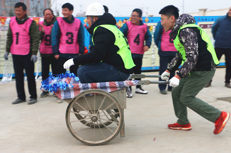 活動當天雖然天氣寒冷,但參加比賽的70余名干部職工熱情不減。趣味運動會共設同心協力障礙賽、手推車接力賽、開心袋鼠跳等8個比賽項目,所有項目的道具均從施工現場就地取材制作,貼合施工企業的工作性質,項目設置既有競技比拼、體力角逐的激烈性,又充滿互助合作、友好交流的趣味性。運動會中高潮迭起:手推車接力項目對體力要求很高,兩支隊伍都卯足了勁,推起小推車上的同事快速前進,頓時,人群里的吶喊聲、歡呼聲此起彼伏;在“開心袋鼠跳”項目中,職工們自由配對,套上袋子,并以最快的速度跳躍。比賽中,有的搭檔配合得很默契,有的則雙雙摔倒在地,落得“人仰馬翻”,引起一陣陣大笑;最激烈的是拔河比賽,參賽隊員們發揚眾志成城的團隊精神,大家擰成一股繩,用盡全身力氣,心往一處想,勁往一處使,鉚足了勁拉動著大繩。在現場觀看比賽的員工們的呼喊聲、加油聲一浪高過一浪,不遺余力地為參賽隊員吶喊助威。經過激烈的角逐,最終力高寶格麗三期項目代表隊取得了勝利。整個運動會氣氛熱烈,精彩紛呈,讓廣大干部職工在歡快的氛圍中,培養團隊凝聚力、提升集體榮譽感,一起開心慶新年。