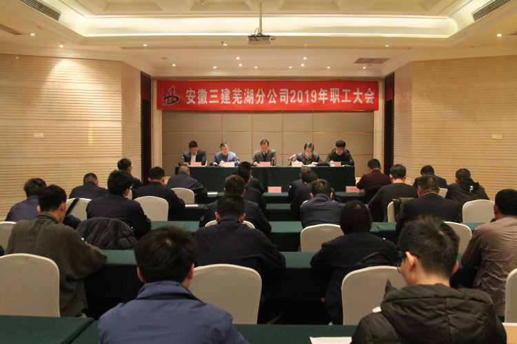 2019年3月13日下午,蕪湖分公司召開2019年職工大會。本次職工大會由分公司黨支部書記、副經理汪輔洲主持。分公司經理、黨支部副書記彭章斌作《經理工作報告》,分公司全體職工參加會議。