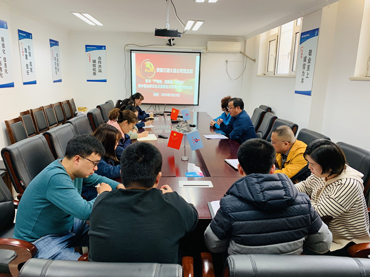為深入學(xué)習(xí)貫徹習(xí)近平總書記關(guān)于力戒形式主義、官僚主義的重要論述和指示批示,堅持“三嚴(yán)三實”,大連公司黨支部3月19日下午3:30在會議室召開專題學(xué)習(xí)會議,傳達(dá)學(xué)習(xí)集團公司黨委、安徽三建公司黨委有關(guān)開展“嚴(yán)規(guī)矩、強監(jiān)督、轉(zhuǎn)作風(fēng)”集中整治形式主義官僚主義專項行動的文件精神。支部黨員和入黨積極分子共15人參加了專題學(xué)習(xí)會議。