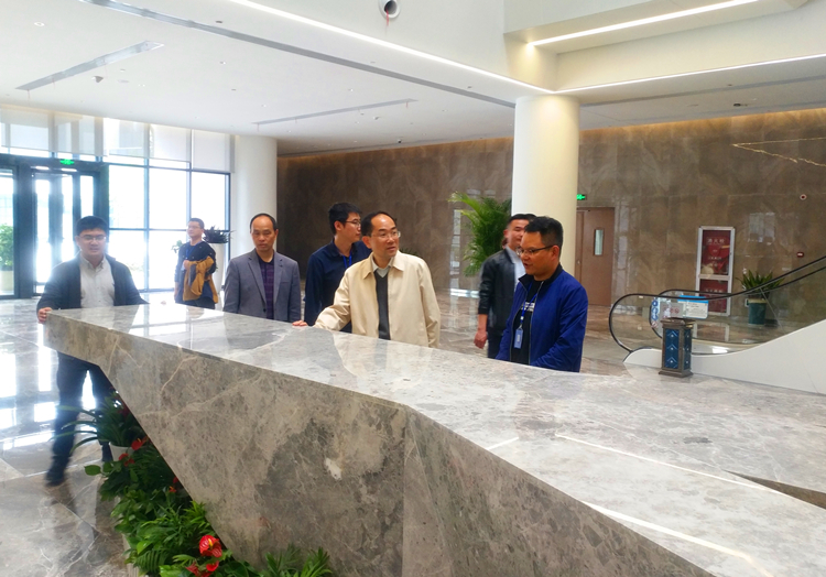 2019年4月30日下午,合肥市重點工程建設管理局副局長杜亞斌、沈龍泉、總工程師宣明一行攜重點局全體人員觀摩安徽創新館。杜亞斌一行對安徽創新館室內高質量、高標準裝飾裝修效果給予高度評價。