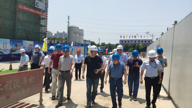 2019年6月4日上午。奇瑞控股集團有限公司副總經理李從山、卓瑞地產總經理梁金華、副總經理張紹純、工程中心副總監王海等一行深入蕪湖公司新里城·龍祥苑項目現場,調研項目現場安全、質量工作。李從山對公司在項目管理工作中的投入和項目的精細化管理給予高度贊揚和充分肯定。