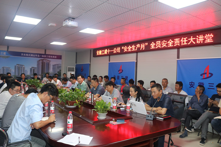 為積極響應建工集團、三建公司關于安全生產工作的號召,強化安全意識,提升安全素質2019616日晚7點,十一公司組織領導班子成員、項目經理、項目管理人員共計40余人在天長恒大項目會議室開展“安全責任大講堂”活動。