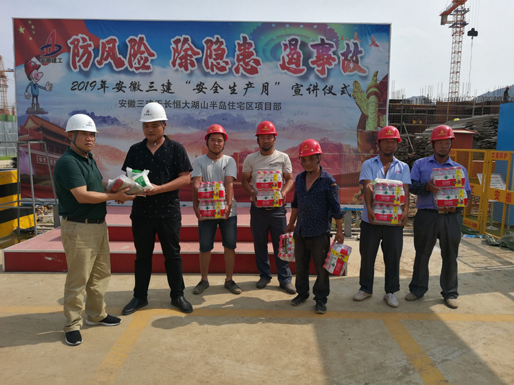 “領導們沒有忘記我們這些高溫下作業的農民工,不僅對我們進行了安全知識培訓,還給我們送來了慰問品,我非常感謝他們。”西北公司力高寶格麗二期保溫班組的徐岳勇捧著綠豆、白糖、毛巾等防暑降溫用品,高興不已的說。這是西北公司7月15日開展送清涼活動中的一幕。活動中,分公司工會給戰斗在酷暑一線的職工和農民工班組,送去了防暑降溫物品,為他們送去了陣陣清涼,同時要求各項目部要抓好夏季防暑降溫工作,合理安排好施工人員的作業時間,調整好飲食、改善勞動和居住條件,確保一線作業人員的身體健康、施工安全,保障農民工的合法權益。
