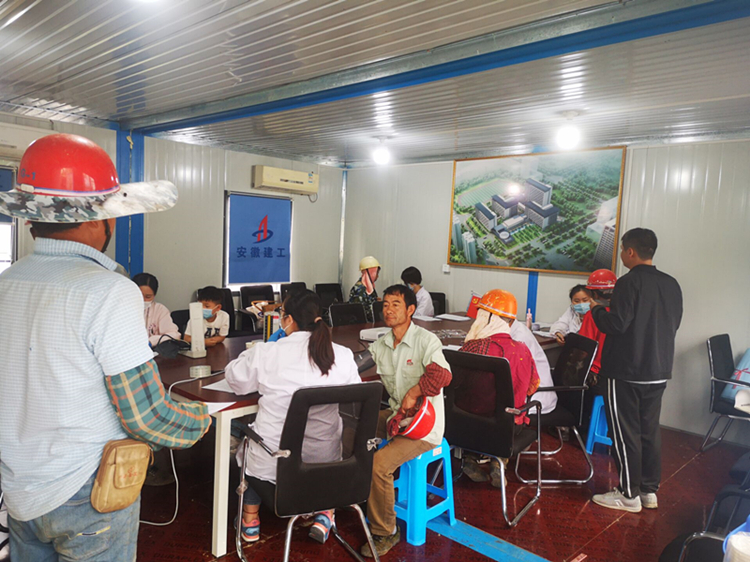 4月21日至5月22日,九公司淮南、亳州、滁州、河南鄭州的七個外地項目陸續組織開展農民工進行體檢工作。為了不影響施工進度,九公司要求各個項目部提前謀劃、緊密部署,精心組織,把醫院醫護人員請到項目一線,把體檢設備搬進工地會議室,建立了臨時體檢中心。體檢內容包括了血壓測量、視力檢查、心臟聽診、五官檢查等項目。通過本次體檢,讓廣大農民工朋友們對自身的健康狀況有了較為全面的了解。