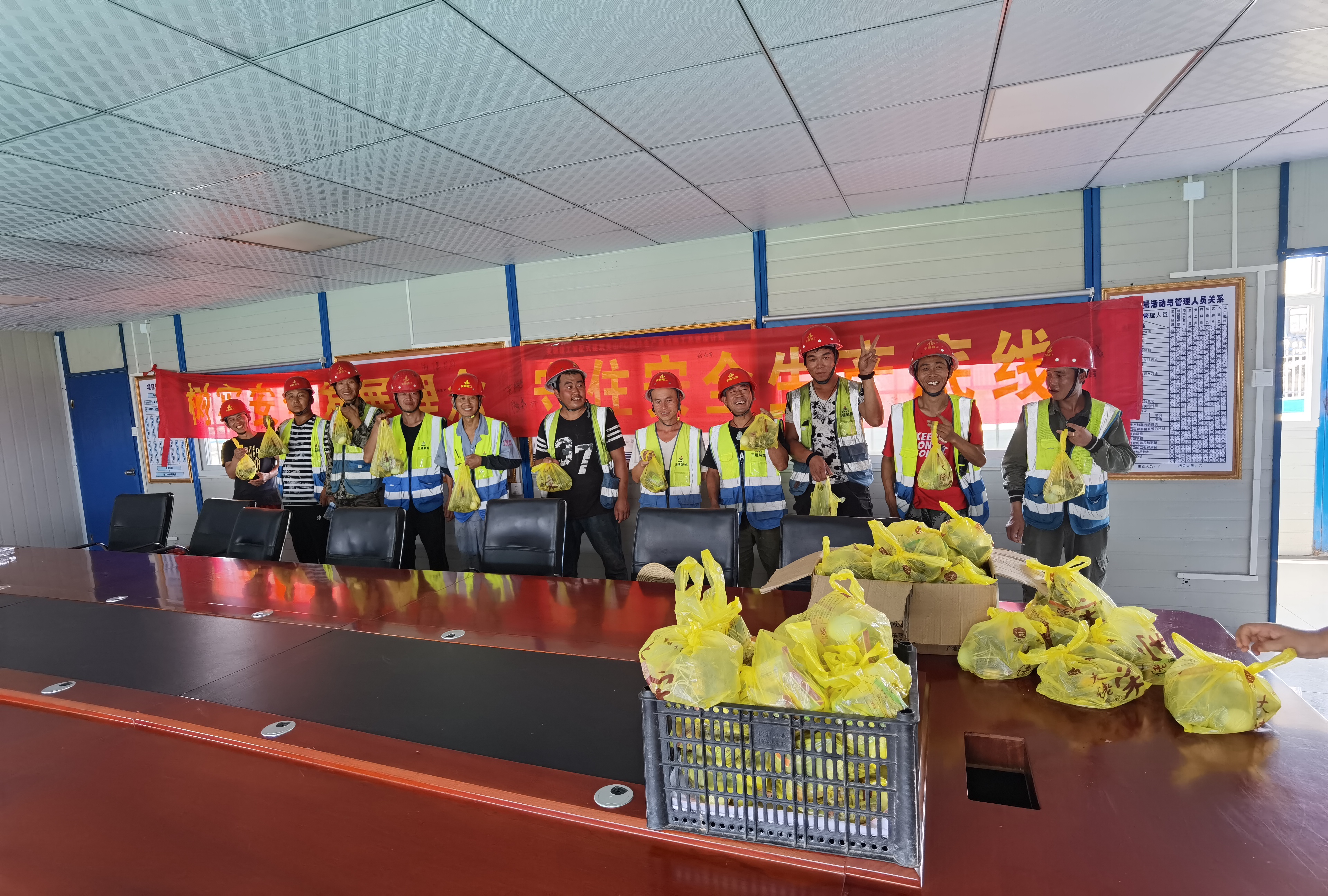 圖為吳山PC構件廠項目部管理人員為工人發放節日禮品