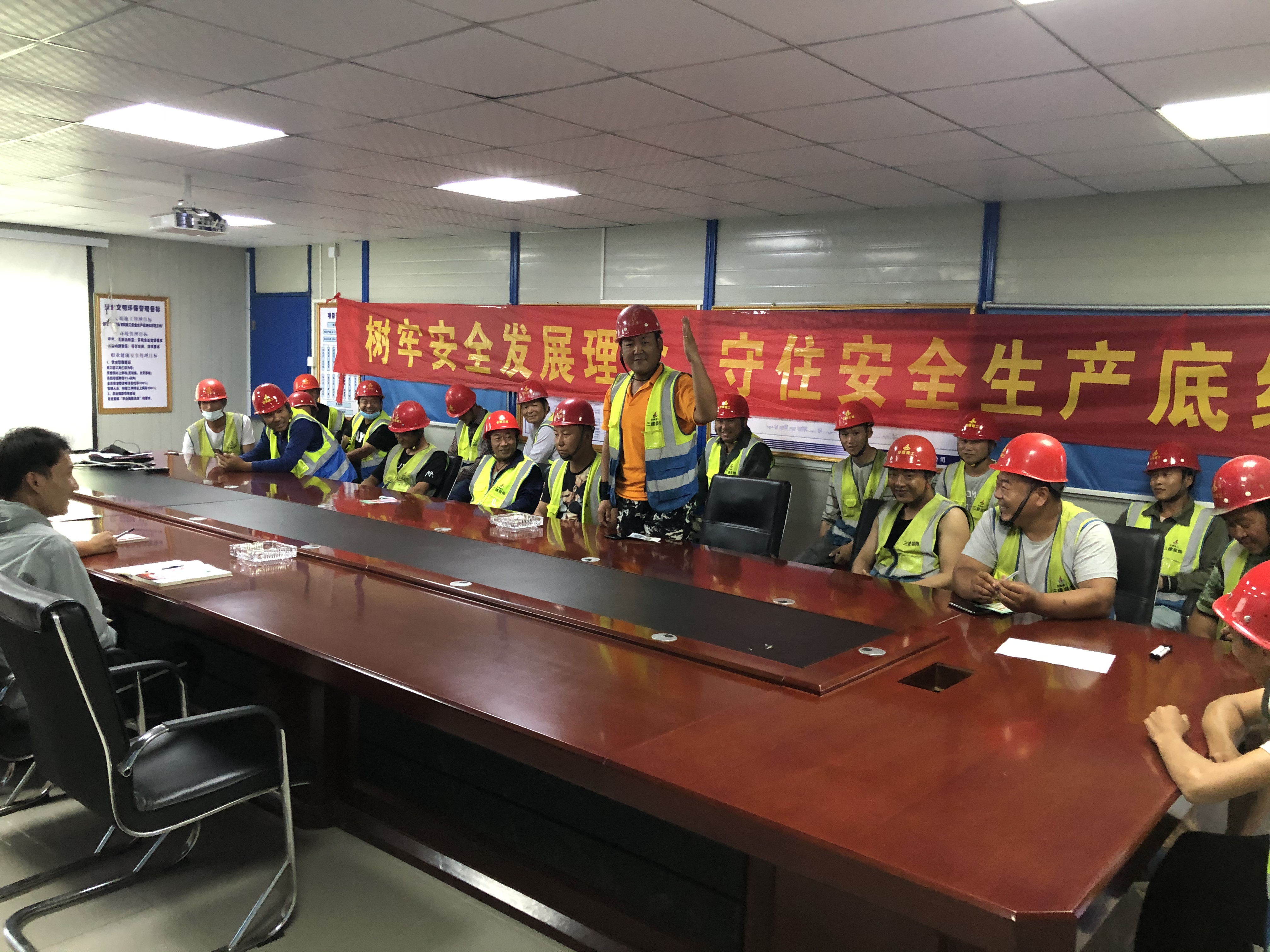 此次安全生產宣傳活動內容包括:項目負責人給全體施工人員上一堂安全生產管理課、觀看安全教育警示片、舉行安全知識有獎競猜及安全生產承諾簽字儀式等。通過一系列安全生產宣傳活動意在進一步提高管理人員與全體施工人員的安全防護意識、安全管理技能,營造了濃烈的安全生產氛圍。