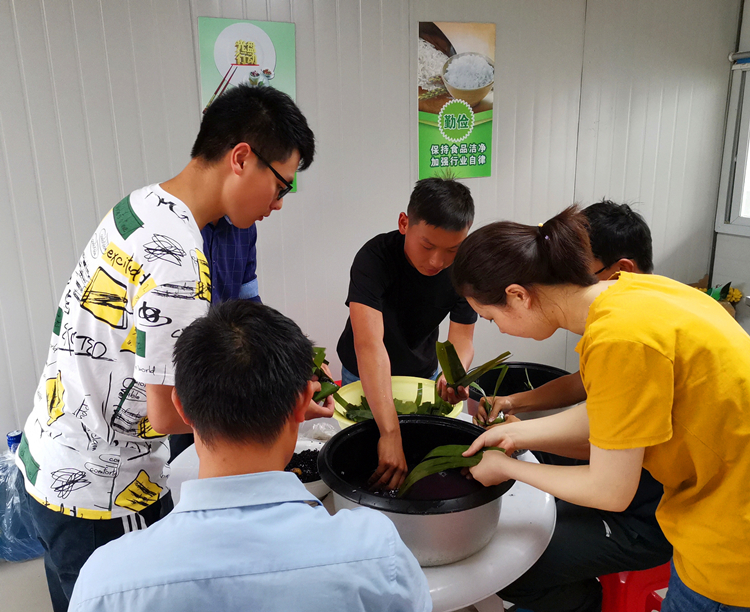 端午節(jié)是我國的傳統(tǒng)節(jié)日,每年的農(nóng)歷初五,人們賽龍舟,吃粽子,緬懷先人。為了讓外地項目職工們過上一個有意義的端午節(jié),七公司外地項目部精心組織了豐富多彩的文體活動。活動既有提高團隊合作的團隊對抗比賽項目,也有傳統(tǒng)的包粽子比賽,還給新進場的大學(xué)生劉雨敬慶祝了生日。豐富的活動營造了快樂的節(jié)日氛圍。當(dāng)大家圍著親手包的熱乎乎的粽子和插滿蠟燭的蛋糕,齊聲為劉雨敬唱生日歌時,劉雨敬感動的熱淚盈眶,他激動地說:“項目部就像一個大家庭,讓我感受到了家一般的溫暖和關(guān)懷,今天這個特殊的日子,我會一輩子牢記心中!”