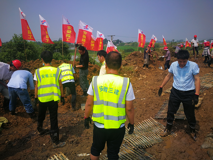 7月19日、20日,六公司經理陳潤坤等先后帶組織50余人參與到公司組織防洪搶險救援隊前往廬江縣白山開展抗洪搶險工作。六公司軌道交通項目還與中鐵七局軌道交通組織人員參與合肥市軌道公司組建的城市防洪應急機動隊,勇擔社會責任,參與屬地防洪救援工作。
