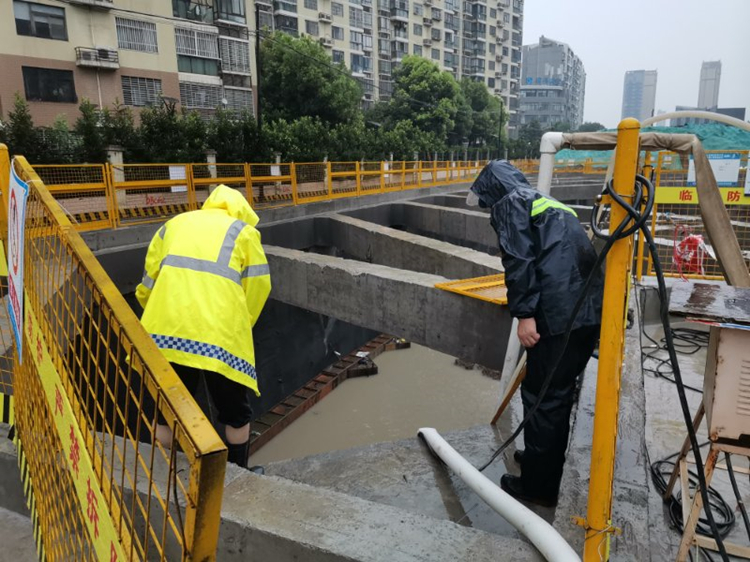 在積極參加地方防汛搶險工作的同時,六公司認真做好在建項目的防汛和安全工作。合肥軌道交通4號線4標段項目積極安排人員24小時值班,做好車站深基坑的排水,以及車站周邊的雨污水管道的排查,著重做好大強路車站兩端洞口的污水池排水工作,同時做好呈坎路車站的1號出入和2號風亭的基坑排水工作,確保了深基坑的安全。