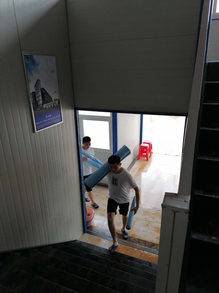 18日下午,四公司領(lǐng)導(dǎo)班子冒雨前往六安項目部,現(xiàn)場指導(dǎo)項目辦公區(qū)排水等抗洪自救工作。在當?shù)卣嘘P(guān)部門的協(xié)助下,項目部迅速開展排水自救,積水在2個小時后逐漸退去。19日下午,雨水完全退去,天氣逐漸轉(zhuǎn)好,項目全體管理人員奔赴現(xiàn)場清理辦公區(qū),雖然已經(jīng)疲憊不堪,但大家依然認真清掃項目部,當天便恢復(fù)項目辦公環(huán)境,為下一步恢復(fù)生產(chǎn)奠定了基礎(chǔ)。