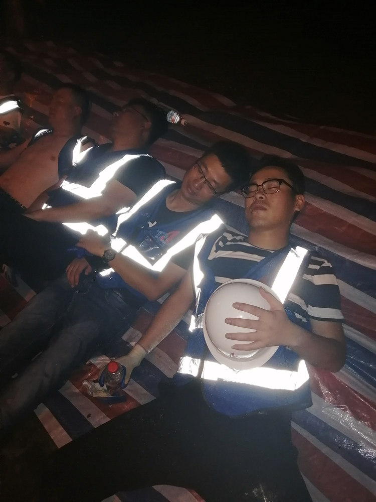 三建速度,7月21日下午5點10分,五公司接到緊急通知后,領導班子立即行動,迅速組成五公司黨員抗洪搶險突擊隊,組織調動皖投·國濱世家二期項目、東城悅苑項目、力高新站253地塊項目、國貿大成花苑項目、和玥公館項目青年職工,組成抗洪搶險突擊隊奔赴搶險現場。50分鐘后,現場參加本次抗洪搶險150余人全部就位。