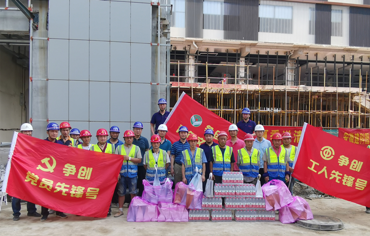 8月18日下午,安徽省建筑科學(xué)研究設(shè)計(jì)院副院長李躍進(jìn)帶隊(duì)深入科研樓改造項(xiàng)目工地,慰問奮戰(zhàn)在施工一線的管理人員和工人,送來綠豆、白糖、毛巾、十滴水、仁丹、風(fēng)油精、礦泉水等防暑降溫物品,為戰(zhàn)高溫、奪高產(chǎn)的一線人員加油鼓勁。李躍進(jìn)在現(xiàn)場強(qiáng)調(diào)要把安全放在第一位,落實(shí)夏季高溫防暑措施,避開高溫時段施工作業(yè),防止人員中暑。