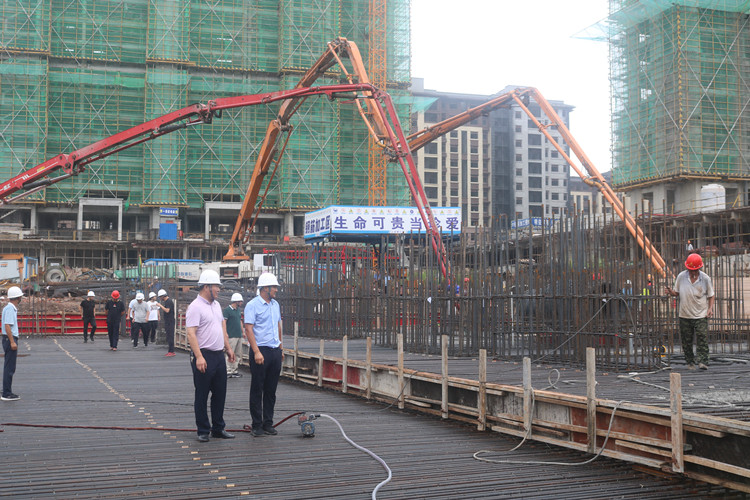 為推動分公司項目部之間的內部交流學習,進一步貫徹落實“戰疫情、搶工期、保目標、促超產”勞動競賽,洽逢金寨明發超高層項目進行大體積混凝土澆筑之際,8月11日上午,十一公司組織領導班子成員、各科室負責人、項目經理及技術負責共計30余人前往金寨明發超高層項目觀摩學習大體積混凝土澆筑工藝。