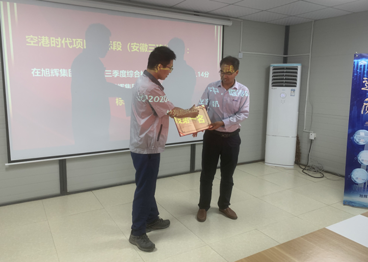 近期,旭輝集團2020年第三季度綜合檢查評比結果出爐,九公司旭輝·空港時代·曦園一標段項目獲得鄭州地區第一名。9月18日,旭輝集團鄭州事業部在空港時代項目部會議室召開了鄭州地區評比總結會議,旭輝集團鄭州事業部工程總監許成樹在會上為空港時代·曦園一標段項目部頒發了榮譽證書。