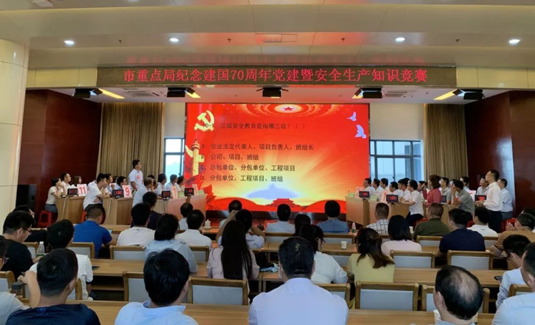 為慶祝中國共產黨建黨98周年,迎接建國70周年,深入學習貫徹習近平新時代中國特色社會主義思想和黨的十九大精神,提高全員安全生產意識,6月26日下午,市重點局在中鐵十局三公司舉辦了紀念建國七十周年黨建暨安全生產知識競賽,安徽三建八公司市中心圖書館項目代表隊喜獲比賽二等獎。