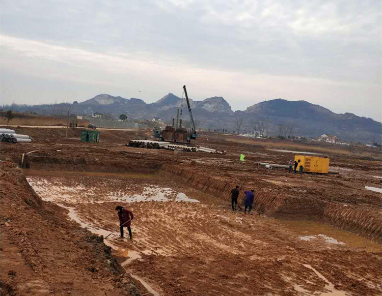 圖為湖山半島二標段項目人工挖排水溝排除余水