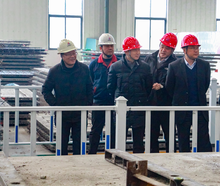 趙時運一行一進(jìn)入廠區(qū),徑直來到井然有序忙碌的生產(chǎn)車間。在構(gòu)件生產(chǎn)線上,趙時運詳細(xì)察看了裝配式建筑部品部件生產(chǎn)加工過程、混凝土成型細(xì)節(jié)質(zhì)量、軌道交通管片生產(chǎn)、車間安全文明管理以及生產(chǎn)工藝流程,詳細(xì)詢問了目前構(gòu)件廠的生產(chǎn)任務(wù)、生產(chǎn)能力、人員數(shù)量、經(jīng)濟(jì)效益、質(zhì)量安全控制情況以及二期投資建設(shè)用地情況,趙時運給予了充分肯定,并對集團(tuán)公司裝配式建筑發(fā)展戰(zhàn)略、市場拓展規(guī)劃等給予了指導(dǎo)性意見。安徽三建副總經(jīng)理、工業(yè)公司總經(jīng)理王興明對下一步規(guī)劃目標(biāo)和發(fā)展思路等做了詳細(xì)匯報。