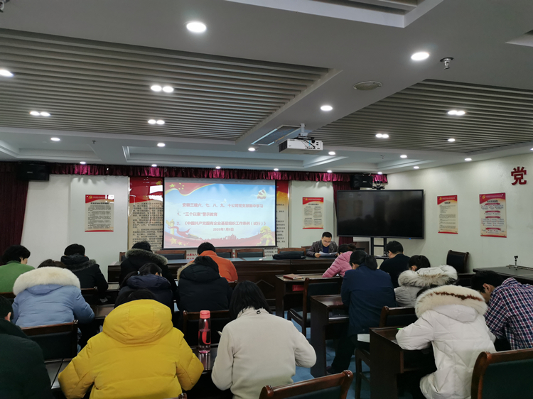 1月6日,基礎公司黨支部在黨員活動室組織全體黨員和職工學習《中國共產黨國有企業基層組織工作條例》
