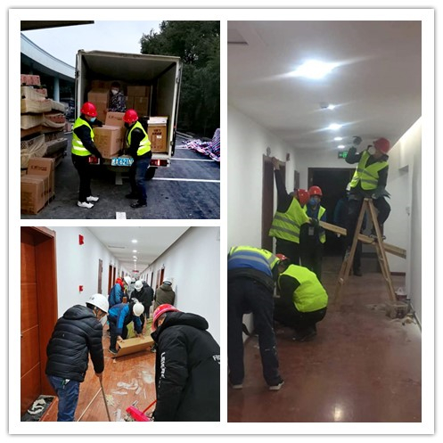 為了趕進(jìn)度,元宵節(jié)當(dāng)天晚上10點(diǎn)依然在大干搶工。裝飾公司萬和生經(jīng)理、安裝公司彭純杰副經(jīng)理和項(xiàng)目全體黨員帶頭加班,全體項(xiàng)目管理人員一起上陣清理現(xiàn)場。“這是一個(gè)不平凡的元宵節(jié)!”一位戴著口罩的三建管理人員這樣說。口罩已成項(xiàng)目標(biāo)配。為了確保項(xiàng)目職工身體健康,項(xiàng)目采取分餐分散的方式就餐,每天安排專人對全體人員進(jìn)行四次測量體溫、發(fā)放并檢查防疫措施落實(shí)情況,確保防疫到位。