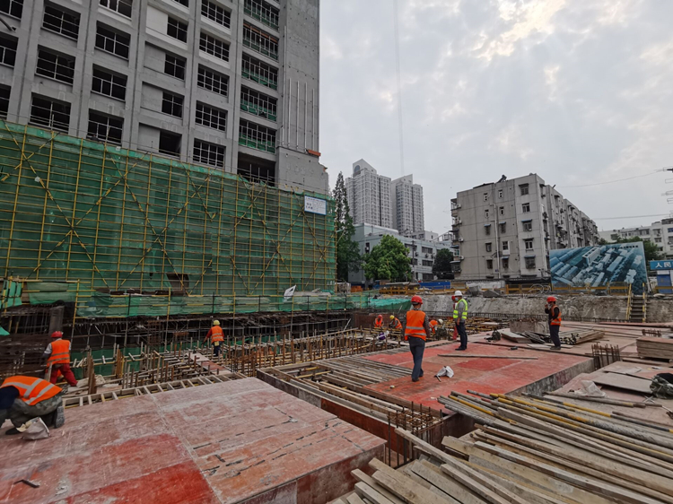 五一期間,七公司主要項目均加班加點趕超工期,項目管理人員采取輪休的方式保證工程進度。圖為天長恒大項目組織管理人員15人,工人近300人,開展主題酒店基礎主體施工。自2020年3月份復工以來,該項目已完成產值約2200萬。