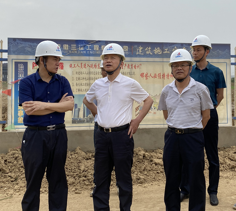 2020年6月3日,安徽建工集團控股公司黨委書記、董事長趙時運深入安徽建工裝配式建筑吳山PC構件生產基地項目現場,調研基地建設。安徽三建公司黨委書記、董事長左登宏參加調研。