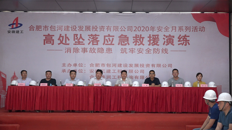 6月15日,一場高處墜落應急救援演練活動在安徽三建公司葛大店幸福城A區項目開展。救援演練活動由合肥市包河建設發展投資有限公司主辦,安徽三建工程有限公司與合肥豐潤工程咨詢有限公司承辦。包河區住建局副局長郭勝利、包河區住建局質安站監督科科長祝星星、包河建發副總經理王鵬、安徽三建公司黨委副書記、總經理何洪春、副總經理李建成、合肥豐潤工程咨詢有限公司有關領導觀摩了演練活動。