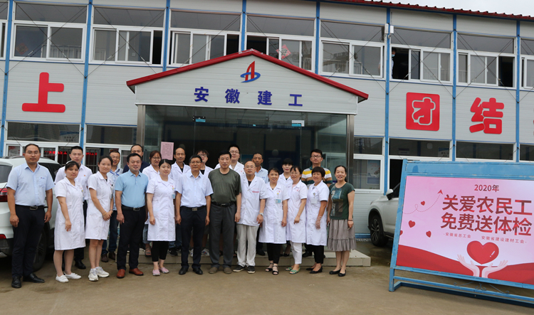 7月13日,由安徽省總工會組織,省建設建材工會、省工人半湯溫泉療養院承辦的“關愛農民工、免費送體檢”活動來到安徽三建合肥市中心圖書館項目,為項目近120名現場農民兄弟工進行了體檢。