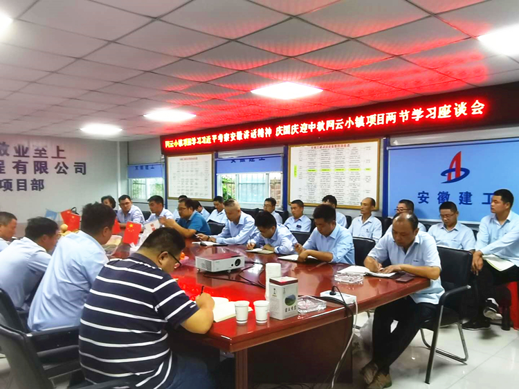 國(guó)慶期間九公司班子分赴各地項(xiàng)目慰問(wèn)堅(jiān)守一線(xiàn)的項(xiàng)目職工并開(kāi)展學(xué)習(xí),圖為九公司支部書(shū)記侯田漢慰問(wèn)淮南網(wǎng)云小鎮(zhèn)項(xiàng)目,并帶領(lǐng)項(xiàng)目職工學(xué)習(xí)習(xí)近平考察安徽重要講話(huà)精神。
