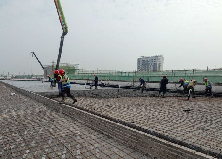 裝飾公司:合肥工業學校財經樓改造項目部組織項目管理人員學習宣傳貫徹黨的十九屆五中全會精神,要求職工全面領會黨的十九屆五中全會的重大意義和精神實質,面對新挑戰,繼續尋求突破、提升施工技術的小革新,提效能、增產值。圖為項目工人正在進行屋頂混凝土澆筑。